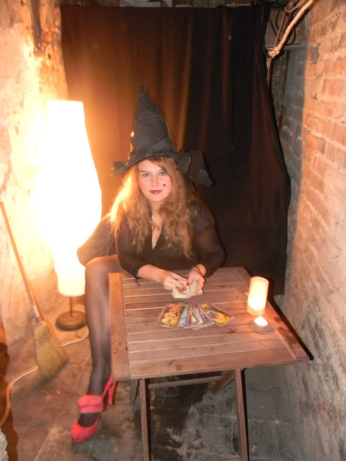 Wróżka Gosia umilała czas gościom imprezy Halloweenowej w klubie "Wypieki Kultury" na Warszawskiej Pradze